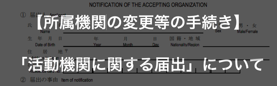 目次「活動機関に関する届出」とは届出先・届出方法届出ができる人「活動機関に関する届出」が対象となる在留資格(ビザ)届出に必要な書類届出が必要なタイミング届出の期限罰則「活動機関に関する届出」とは 活動機関に関する届出は活 … 続きを読む 「活動機関に関する届出」の詳細解説|届出が必要な在留資格